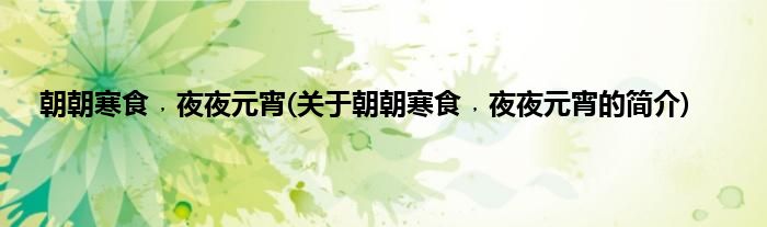 本文关于朝朝寒食﹐夜夜元宵的简介就讲解完毕,希望对大家有所帮助。