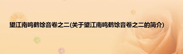大家好,望江南鸣鹤馀音卷之二,关于望江南鸣鹤馀音卷之二的简介很多人还不知道,现在让我们一起来看看吧!
