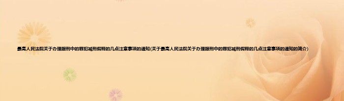 本文关于最高人民法院关于办理服刑中的罪犯减刑假释的几点注意事项的通知的简介就讲解完毕,希望对大家有所帮助。