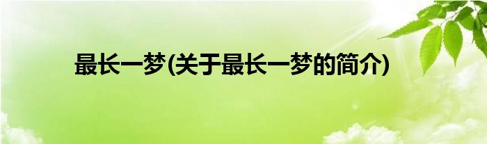 大家好,最长一梦,关于最长一梦的简介很多人还不知道,现在让我们一起来看看吧!