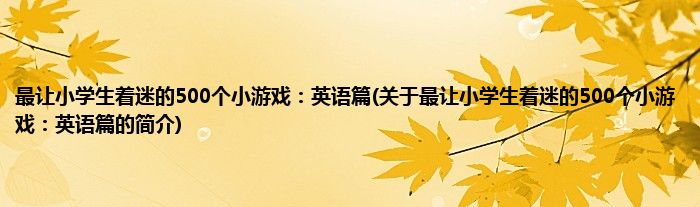 本文关于最让小学生着迷的500个小游戏:英语篇的简介就讲解完毕,希望对大家有所帮助。