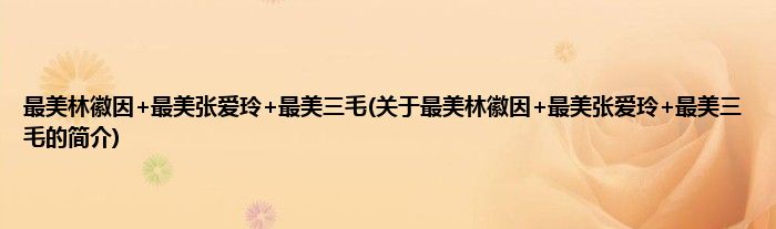 本文关于最美林徽因+最美张爱玲+最美三毛的简介就讲解完毕,希望对大家有所帮助。