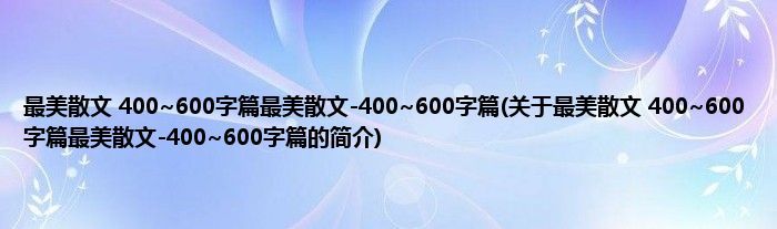 大家好,最美散文 400~600字篇最美散文-400~600字篇,关于最美散文 400~600字篇最美散文-400~600字篇的简介很多人还不知道,现在让我们一起来看看吧!
