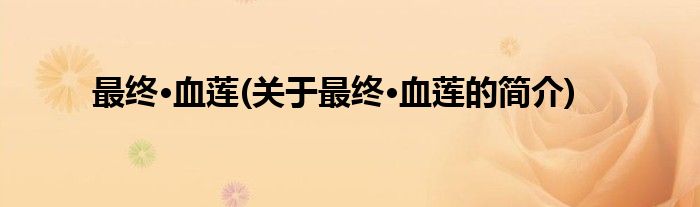 本文关于最终·血莲的简介就讲解完毕,希望对大家有所帮助。