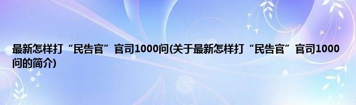 本文关于最新怎样打“民告官”官司1000问的简介就讲解完毕,希望对大家有所帮助。