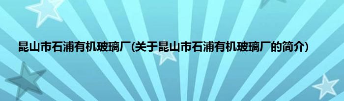 本文关于昆山市石浦有机玻璃厂的简介就讲解完毕,希望对大家有所帮助。