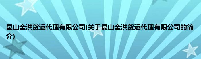 本文关于昆山全洪货运代理有限公司的简介就讲解完毕,希望对大家有所帮助。
