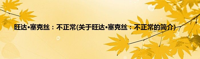 本文关于旺达·塞克丝:不正常的简介就讲解完毕,希望对大家有所帮助。