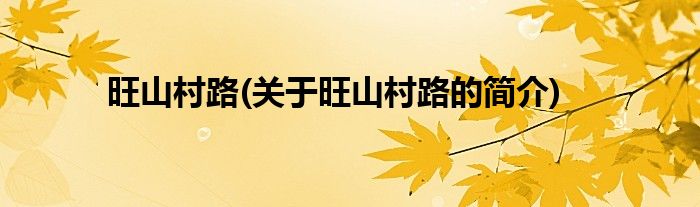 大家好,旺山村路,关于旺山村路的简介很多人还不知道,现在让我们一起来看看吧!