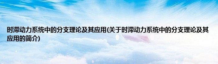 时滞动力系统中的分支理论及其应用(关于时滞动力系统中的分支理论及其应用的简介)