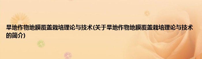 本文关于旱地作物地膜覆盖栽培理论与技术的简介就讲解完毕,希望对大家有所帮助。