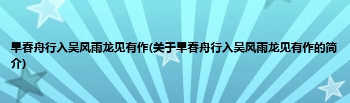 本文关于早春舟行入吴风雨龙见有作的简介就讲解完毕,希望对大家有所帮助。
