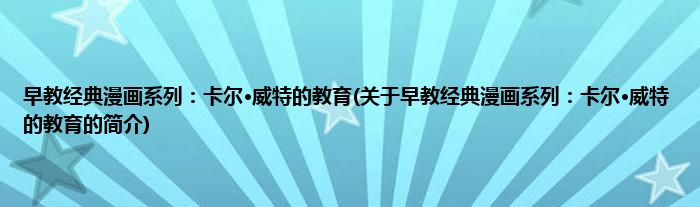 本文关于早教经典漫画系列:卡尔·威特的教育的简介就讲解完毕,希望对大家有所帮助。