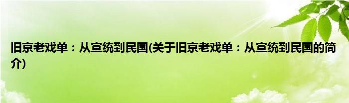 本文关于旧京老戏单:从宣统到民国的简介就讲解完毕,希望对大家有所帮助。