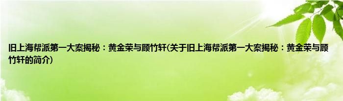 本文关于旧上海帮派第一大案揭秘:黄金荣与顾竹轩的简介就讲解完毕,希望对大家有所帮助。