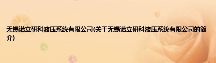 本文关于无锡诺立研科液压系统有限公司的简介就讲解完毕,希望对大家有所帮助。