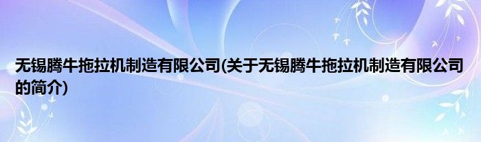 无锡腾牛拖拉机制造有限公司(关于无锡腾牛拖拉机制造有限公司的简介)