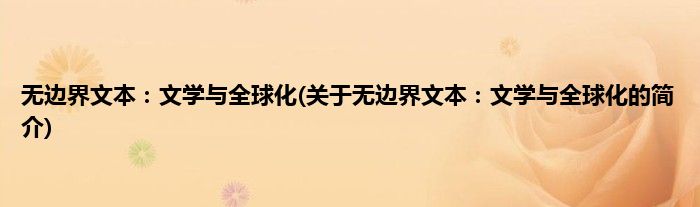 本文关于无边界文本:文学与全球化的简介就讲解完毕,希望对大家有所帮助。