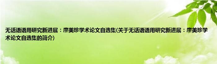 1、 无话语语用研究新进展:廖美珍学术论文自选集由外语教学与研究出版社出版 。