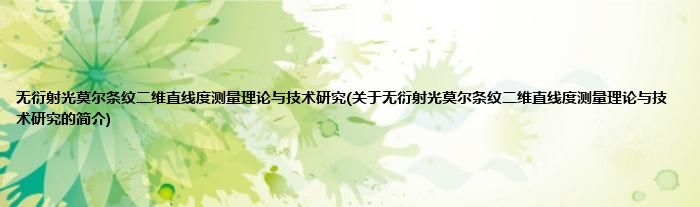 大家好,无衍射光莫尔条纹二维直线度测量理论与技术研究,关于无衍射光莫尔条纹二维直线度测量理论与技术研究的简介很多人还不知道,现在让我们一起来看看吧!