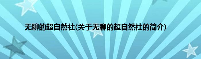 大家好,无聊的超自然社,关于无聊的超自然社的简介很多人还不知道,现在让我们一起来看看吧!