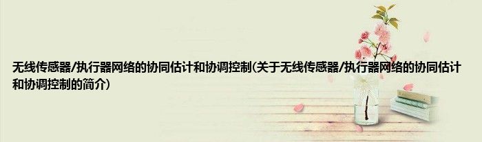 无线传感器/执行器网络的协同估计和协调控制(关于无线传感器/执行器网络的协同估计和协调控制的简介)