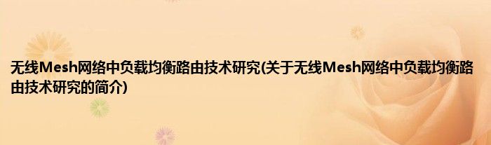无线Mesh网络中负载均衡路由技术研究(关于无线Mesh网络中负载均衡路由技术研究的简介)