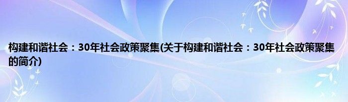 大家好,构建和谐社会:30年社会政策聚集,关于构建和谐社会:30年社会政策聚集的简介很多人还不知道,现在让我们一起来看看吧!