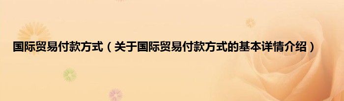 本文关于国际贸易付款方式的基本详情介绍就讲解完毕,希望对大家有所帮助。