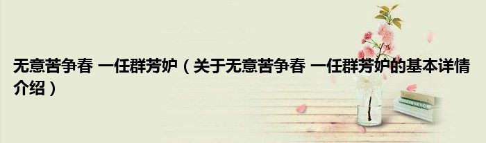 本文关于无意苦争春 一任群芳妒的基本详情介绍就讲解完毕,希望对大家有所帮助。