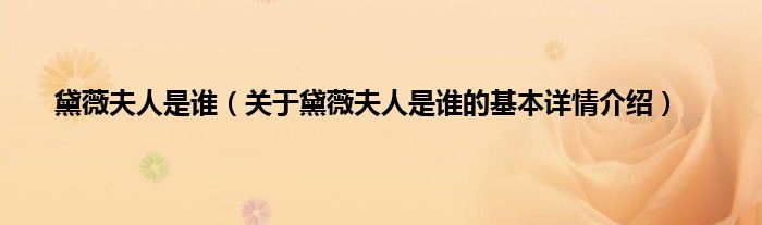 本文关于黛薇夫人是谁的基本详情介绍就讲解完毕,希望对大家有所帮助。