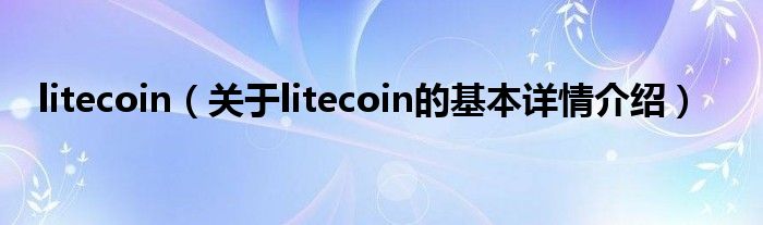 本文关于litecoin的基本详情介绍就讲解完毕,希望对大家有所帮助。