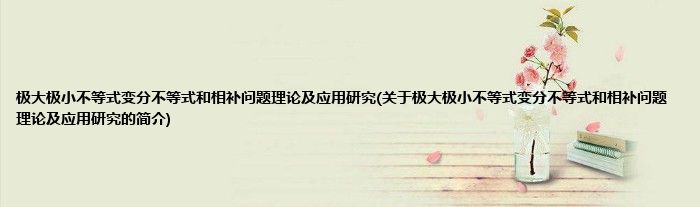 本文关于极大极小不等式变分不等式和相补问题理论及应用研究的简介就讲解完毕,希望对大家有所帮助。