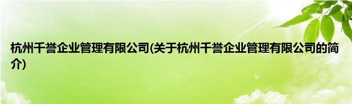 本文关于杭州千誉企业管理有限公司的简介就讲解完毕,希望对大家有所帮助。