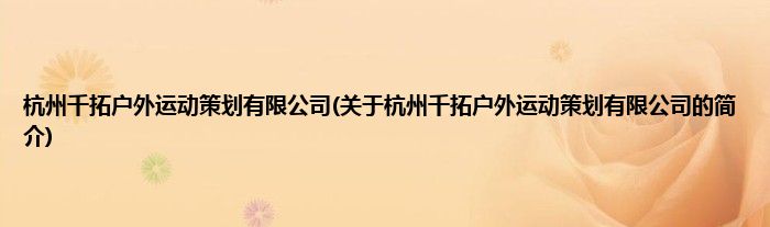 本文关于杭州千拓户外运动策划有限公司的简介就讲解完毕,希望对大家有所帮助。