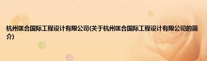 本文关于杭州匡合国际工程设计有限公司的简介就讲解完毕,希望对大家有所帮助。
