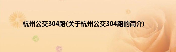 大家好,杭州公交304路,关于杭州公交304路的简介很多人还不知道,现在让我们一起来看看吧!