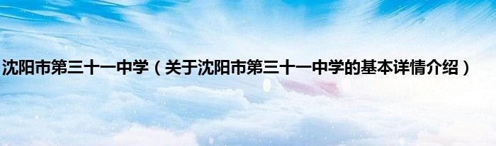 本文关于沈阳市第三十一中学的基本详情介绍就讲解完毕,希望对大家有所帮助。