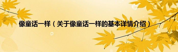 本文关于像童话一样的基本详情介绍就讲解完毕,希望对大家有所帮助。