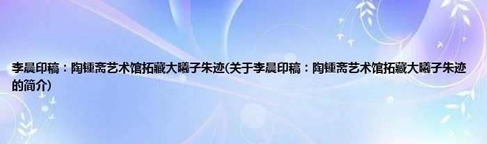本文关于李晨印稿:陶锺斋艺术馆拓藏大曦子朱迹的简介就讲解完毕,希望对大家有所帮助。