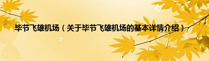 本文关于毕节飞雄机场的基本详情介绍就讲解完毕,希望对大家有所帮助。