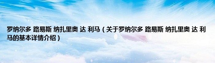 本文关于罗纳尔多 路易斯 纳扎里奥 达 利马的基本详情介绍就讲解完毕,希望对大家有所帮助。