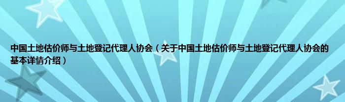本文关于中国土地估价师与土地登记代理人协会的基本详情介绍就讲解完毕,希望对大家有所帮助。