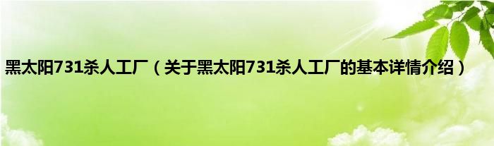 本文关于黑太阳731杀人工厂的基本详情介绍就讲解完毕,希望对大家有所帮助。