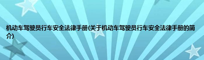 大家好,机动车驾驶员行车安全法律手册,关于机动车驾驶员行车安全法律手册的简介很多人还不知道,现在让我们一起来看看吧!