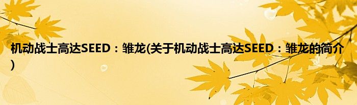 本文关于机动战士高达SEED:雏龙的简介就讲解完毕,希望对大家有所帮助。