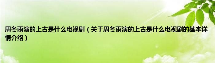 本文关于周冬雨演的上古是什么电视剧的基本详情介绍就讲解完毕,希望对大家有所帮助。