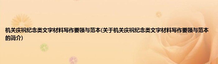 本文关于机关庆祝纪念类文字材料写作要领与范本的简介就讲解完毕,希望对大家有所帮助。