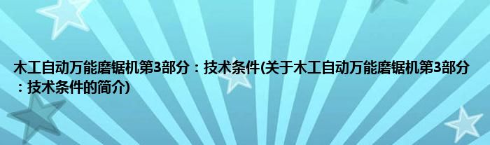 木工自动万能磨锯机第3部分:技术条件(关于木工自动万能磨锯机第3部分:技术条件的简介)