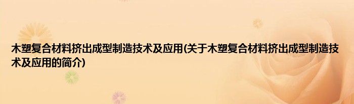 大家好,木塑复合材料挤出成型制造技术及应用,关于木塑复合材料挤出成型制造技术及应用的简介很多人还不知道,现在让我们一起来看看吧!